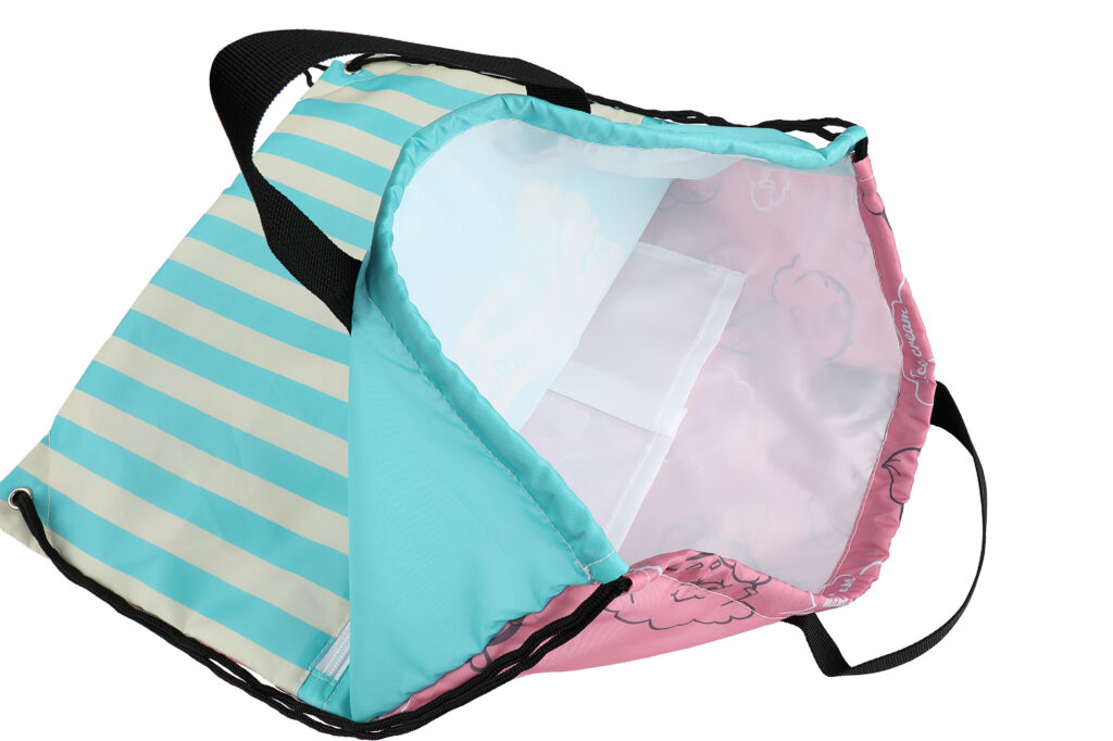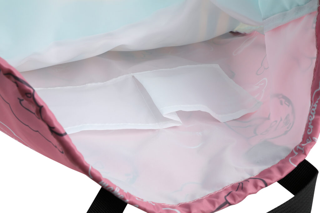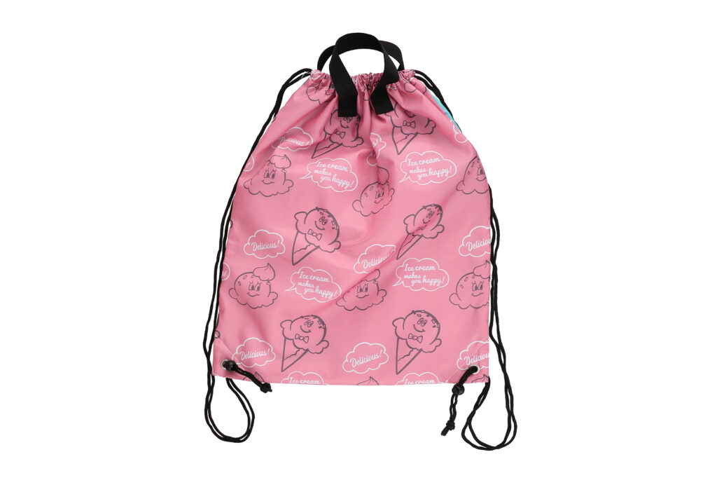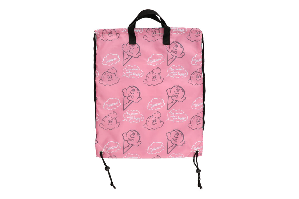 ナップサックは表面の上部と下部ポケット、裏面にそれぞれ別の指定柄をデザインできます