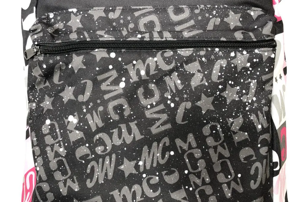 背中部分以外全面にエンドレス柄をフルカラー印刷できます もちろんショルダー部分にもエンドレス柄で印刷可能です