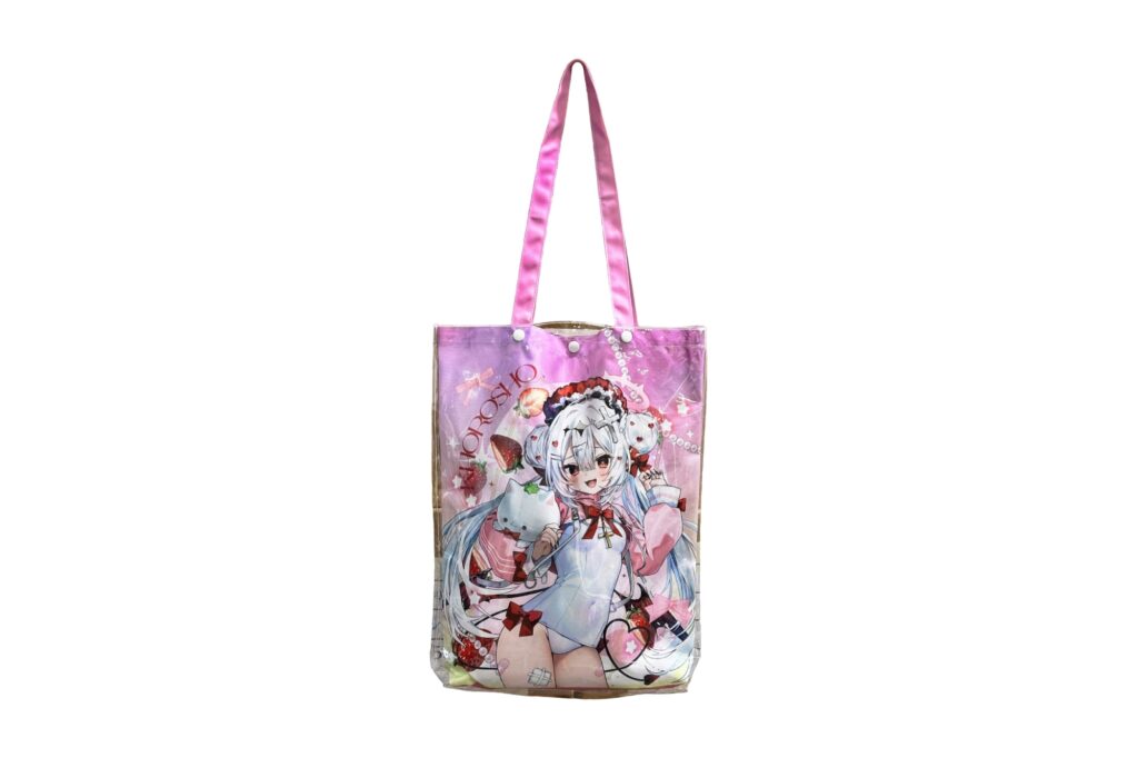 クリアトートバッグはクリアカバーが付いてることによって汗にも汚れにも強く、大きさ的にも非常に使いやすいと大好評で夏コミで購入後すぐ使ってくださる方が多く好評でした。