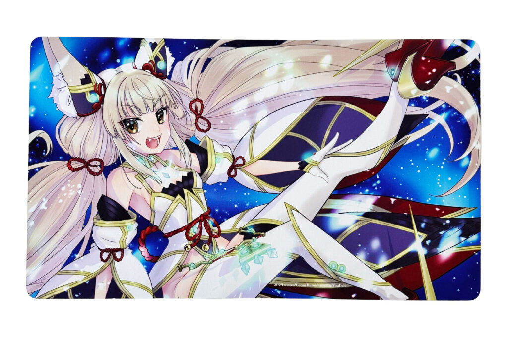 『均等な厚みでしっかりとした作りのラバーマットです。一般的なカードゲーム用と同じサイズなので十分なスペースがあります。印刷はとても発色がよく鮮やかで、表面はサテン状ですべすべ。カードゲーム用のプレイマットだけでなくパソコン周辺のデスクマットとしても優秀です。個包装済みでの納品も助かりました。』